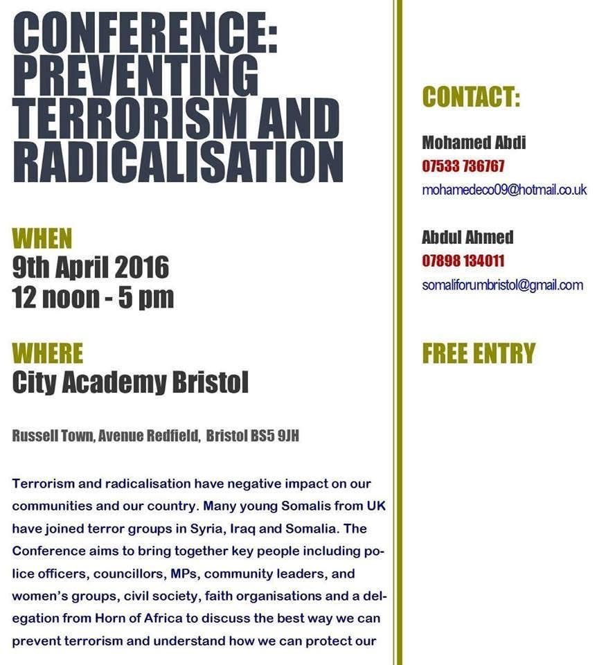 Yesterday, Bristol Somali Youth Voice and the Bristol Somali Forum organised a Youth Radicalisation Conference at City Academy in Bristol. The event brought together a wide range of community stakeholders, including community leaders, faith groups, women’s groups, local politicians (councillors and MPs), local service providers, and young people, to discuss the challenges facing youth in the community.